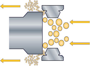 高壓均質機首要任務是經由過程柱塞來去活動將被加工物料以高壓的情勢送至均質閥,使物料流經閥頭與閥座間細小的隙瞬遭到湍流、空穴、撞擊、剪切等復合的感化,將本來粗拙的乳濁液或懸浮液加工成極纖細的、平均不變的液與液相混乳化物或液與固分離物。